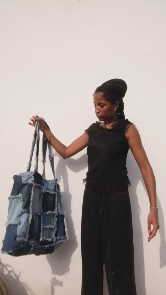Denim Patchwork Tote Bag