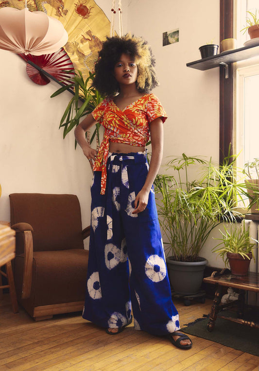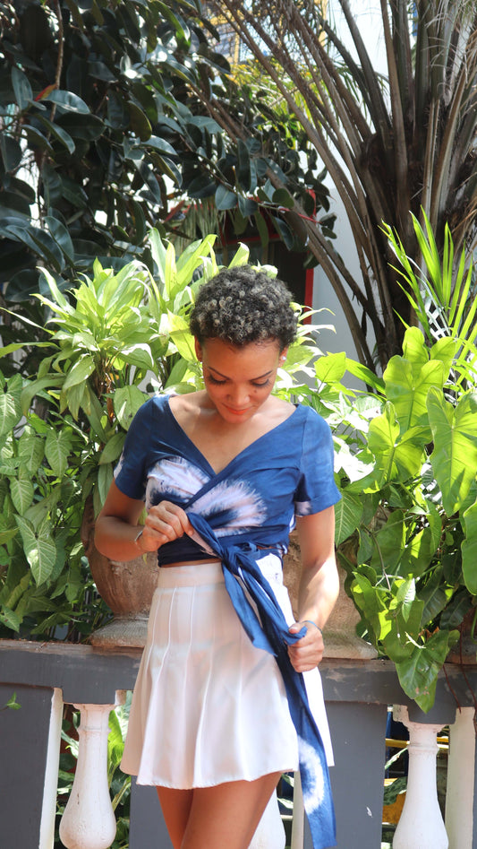 SAKUMONO WRAP TOP | INDIGO- READY TO SHIP-SIZE XS