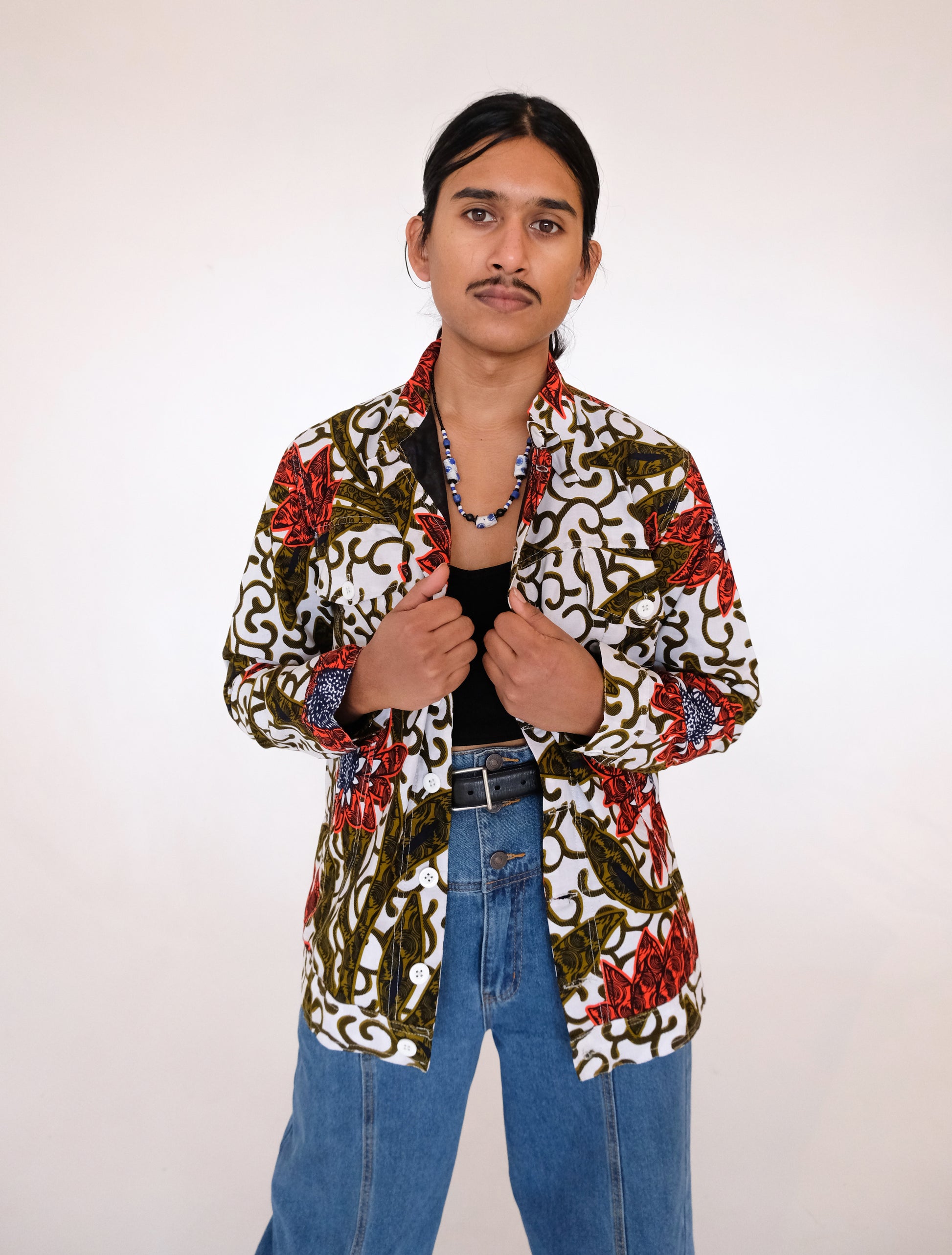 The revival of our ABURI Jacket is here. Unisex fit, classic jacket silhouette with front patch pockets at chest and inseam ones too. Gorgeous detailed stitching at front and back panels, constructed like a denim jacket. Pointed collar, buttons up at cuff. Lined on the inside.