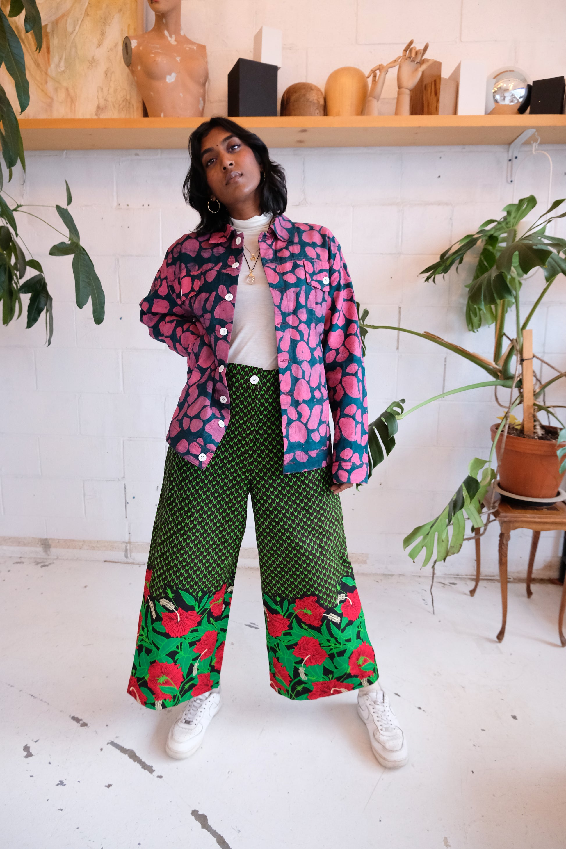 The revival of our ABURI Jacket is here. Unisex fit, classic jacket silhouette with front patch pockets at chest and inseam ones too. Gorgeous detailed stitching at front and back panels, constructed like a denim jacket. Pointed collar, buttons up at cuff. Lined on the inside.