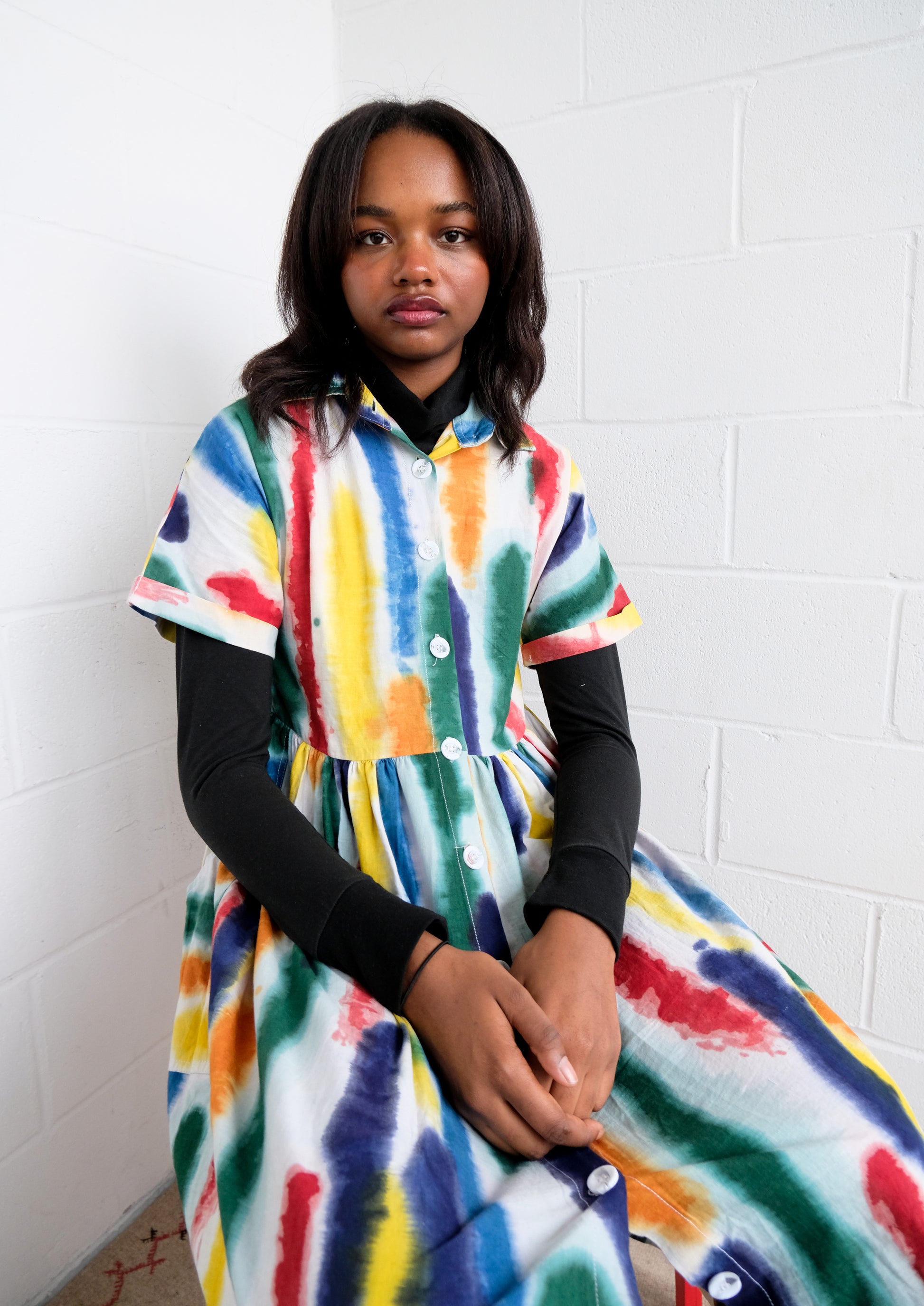 Our very relaxed shirt dress features a collar that buttons up all the way and is really an everyday kinda dress. 100% an artsy, laidback vibe.
