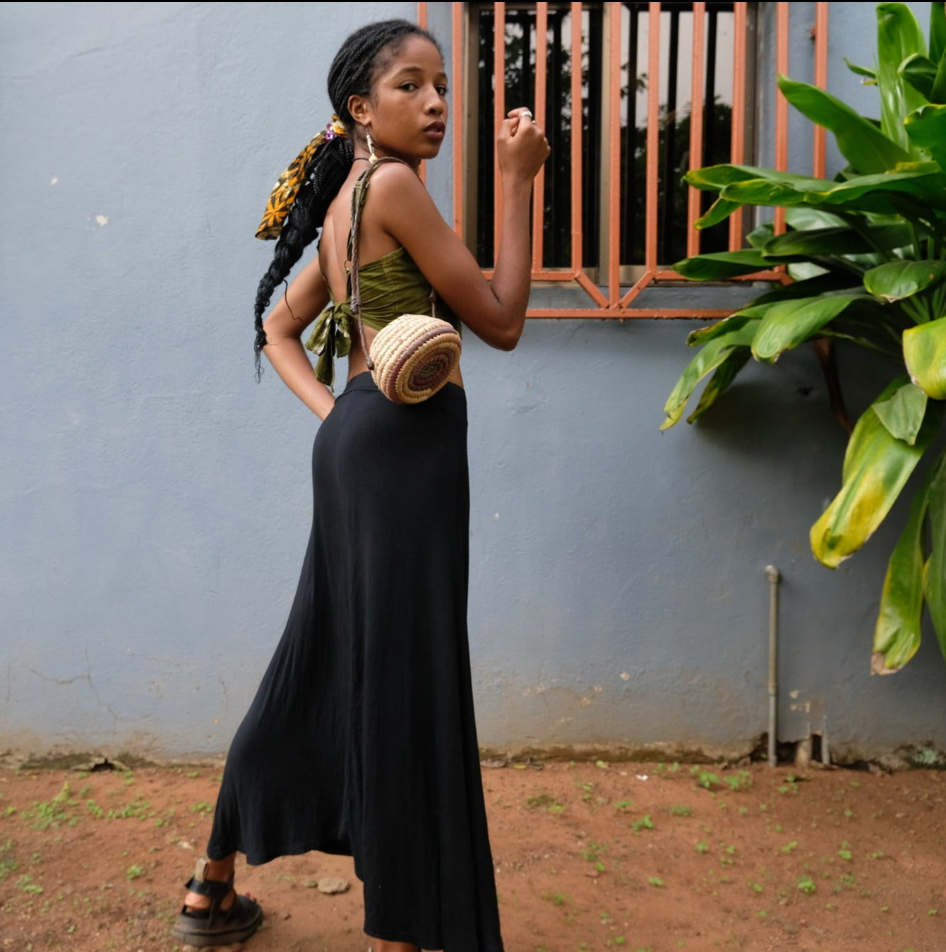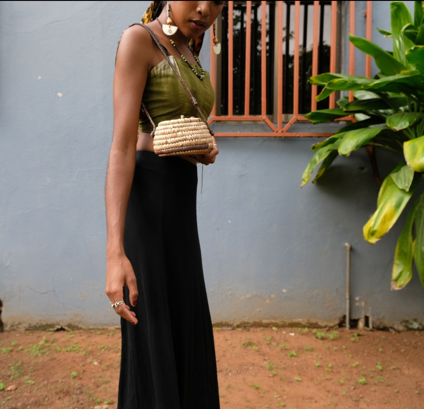 A small pot-shaped purse woven from elephant grass, it features an ornate design with a sturdy, fitted lid. Multifunctional for picnicking or sitting pretty on your bedside table. Easy to tote around with a braided leather strap. Expertly crafted by artisans in the Upper Eastern region of Ghana.